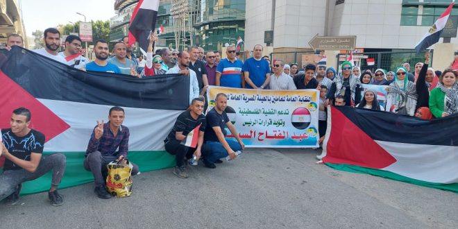 حرص العاملون في شركة عجيبة للبترول بقيادة المهندس ثروت الجندي رئيس الشركة وبحضور قيادات عديدة في مقدمتهم اللواء اشرف ابو المجد مدير امن شركة عجيبة للبترول والكثير من العاملين ابناء الشركة على المشاركه اليوم والتواجد في مسيرة لدعم القضية الفلسطينية ورفض مبدأالتهجير للاشقاء الفلسطينيين.