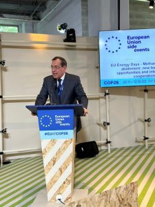 افتتح المهندس طارق الملا وزير البترول والثروة المعدنية اليوم خلال فعاليات قمة الأمم المتحدة للمناخ COP28 بدبي جلسة الحد من انبعاثات الميثان و دور التعاون الدولي في تعزيز الفرص الجديدة ، والتي نظمها الاتحاد الأوروبي في جناحه بالمنطقة الزرقاء بالمؤتمر ، حيث ضمت الجلسة كادري سيمسون مفوضة الطاقة والمناخ بالاتحاد الأوروبي، والدكتور فاتح بيرول المدير التنفيذي لوكالة الطاقة الدولية و بير ستيفان وينزل، وزير الشؤون الاقتصادية والعمل المناخي الألماني ، وأدارت الجلسة ديتي يول يورجنسن، مدير عام إدارة الطاقة بالمفوضية الأوروبية.