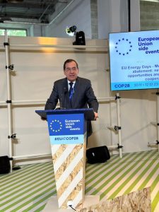 و في كلمته امام الجلسة اعلن المهندس طارق الملا وزير البترول والثروة المعدنية أن قطاع البترول بصدد إبرام اتفاق لوضع خارطة طريق مفصلة لخفض انبعاثات غاز الميثان في قطاع البترول والغاز في مصر من خلال الدعم الفني المقدم من وكالة التجارة والتنمية الأمريكية USTDA ، مضيفاً انه من المقرر توقيع الاتفاق خلال فعاليات مؤتمر المناخ الحالي COP28.