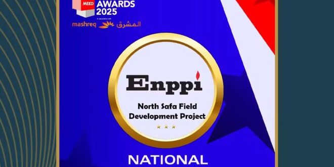 حصدت شركة إنــبى جائزة أفضل مشروع لعام 2025 في مجال الطاقة على مستوى جمهورية مصر العربية – للعام الرابع على التوالي – من مؤسسة Middle East Economic Digest (MEED) المتخصصة في متابعة مشروعات وأخبار منطقة الشرق الأوسط، وذلك عن أعمالها في مشروع تنمية حقل شمال صفا البحري لصالح شركة بترول خليج السويس “جابكو”.