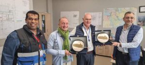 ونيابة عن رئيس الشركة قام المهندس عمرو فتحي بتوزيع الدروع و الهدايا على ممثلي السلامة والصحة المهنية للشركات دعماً وتقديراً لهم على المجهود المبذول بالمشروع، والذي انعكس من خلال تحقيق أكثر من ١٧ مليون ساعة عمل آمنه بدون حوادث.