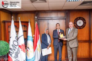وفي ختام الاجتماع أشاد المهندس عبد المعز خليفة بمجهودات فريق العمل من أموك الذي لم يدخر جهداً في تقديم يد العون لنظيره من شركة بترول أبو قير في سبيل الحصول علي تقرير التطابق، كما حرص علي تقديم دروع تكريماً لهم. بينما أهداه مهندس عمرو لطفي درع أموك تأكيداً علي العلاقات الوطيدة بين الشركتين.