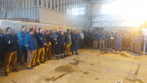 وخلال الزيارة، عقد رئيس الشركة وقفة سلامة مع العاملين، شدد خلالها على أهمية الالتزام الكامل بتطبيق أعلى معايير السلامة والصحة المهنية، باعتبارها الركيزة الأساسية لاستدامة العمليات وتحقيق الأداء الآمن.