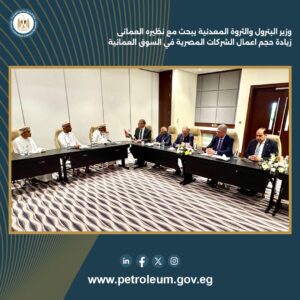 تناولت المباحثات تعزيز التعاون في مجالات البترول والتعدين، والتوسع في مشاركة الشركات البترولية المصرية في مشروعات البنية التحتية بالسلطنة.