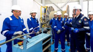 وافتتح الوزير ورش اصلاح الكابلات للطلمبات الغاطسة ESP والمعدات السطحية والتي طورتها شركة خالدة لرفع كفاءة عمليات الاصلاح محققة وفورات مالية هامة الي جانب دعم عمليات تشغيل الآبار واستمرارية الإنتاج وخدمة شركات البترول الأخري ، وأشاد الوزير بالمستوي الفني والتقني الذي يضاهي الشركات العالمية.