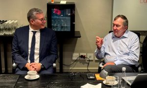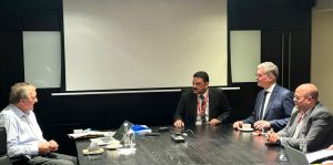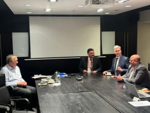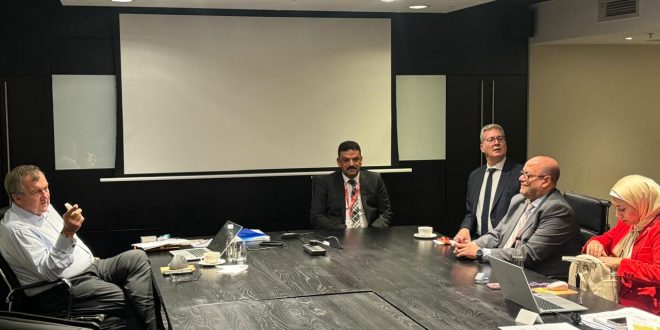على هامش مشاركته فى مؤتمر إندابا للتعدين المُنعقد بمدينة كيب تاون في جنوب أفريقيا خلال الفترة من 3-6 فبراير الجاري ، عقد المهندس كريم بدوي وزير البترول والثروة المعدنية جلسة مباحثات مع مارك بريستو الرئيس التنفيذي لشركة باريك جولد بحضور سيباستيان بوك الرئيس التنفيذي للعمليات بمنطقة أفريقيا والشرق الأوسط بشركة باريك، والمهندس معتز عاطف وكيل الوزارة لشئون مكتب الوزير والمكتب الفني والمتحدث الرسمي للوزارة ، والجيولوجي ياسر رمضان رئيس الهيئة المصرية العامة للثروة المعدنية، والجيولوجية أسماء نديم عضو فريق عمل وحدة التعدين بالمكتب الفني بوزارة البترول والثروة المعدنية.