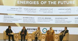 شهد الرئيس عبدالفتاح السيسى خلال افتتاح مؤتمر ومعرض مصر الدولى للطاقة ، جلسة حوارية بعنوان طاقات المستقبل ضمت المهندس طارق الملا وزير البترول والثروة المعدنية وديتى يول يورجنسون مدير إدارة الطاقة بمفوضية الاتحاد الأوروبى وهيثم الغيص أمين عام منظمة أوبك وجوانجزى تشن نائب رئيس البنك الدولى للبنية التحتية. وأكد الملا …